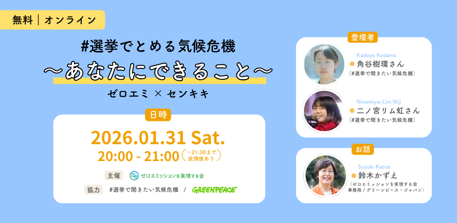 【1/31(土)20:00〜】「#選挙でとめる気候危機〜あなたにできること〜」ゼロエミ × センキキ
